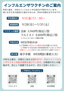 2025年インフルエンザワクチン(注射型、点鼻型【フルミスト】)のご案内